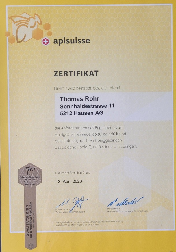 und den Verkauf von einwandfreiem, kontrolliertem Schweizer Bienenhonig. Die anerkannte